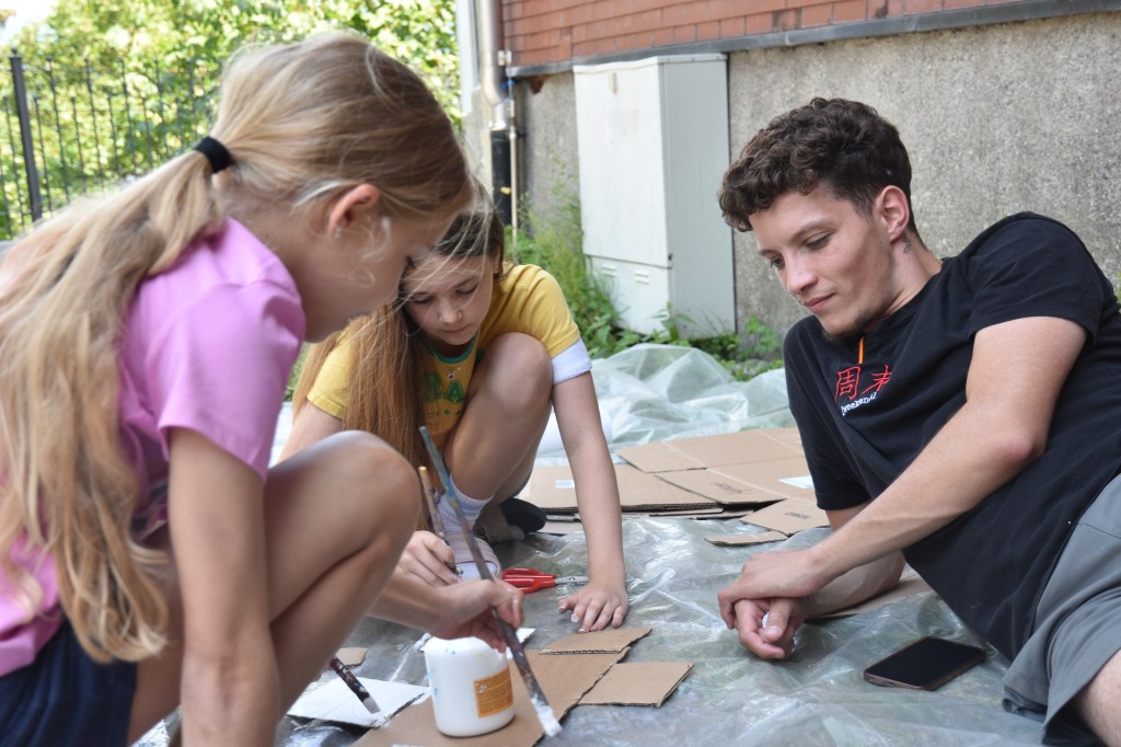 Am nachmittag hatten wir workshop. Es gab Lagerradio, Spiel und spass, Basteln. Wir haben einen Briefkasten gebastelt und Schilder gemalt wo die zimmer drauf stehen. Am Nachmittag mussten wir das Radio auf jeder Ebene des Hauses haben wir es dann hingestellt. Das Radio ist ein sehr wichtiger bestand teil weil es die Kinder aufweckt. Bei Baggy, flash und Rana musste man Basteln und schilder machen.