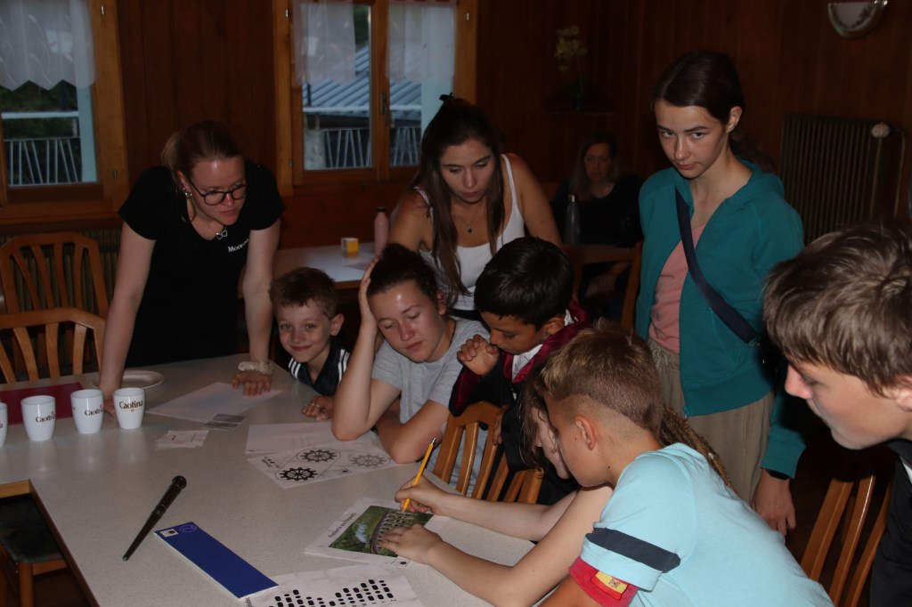 Dann am Abend assen wir znacht, nach dem znacht gab es ein escape Game wo die zwei komische Hexen leitete. Wir mussten Rätsel lösen, knifflige Aufgaben heraus finden.