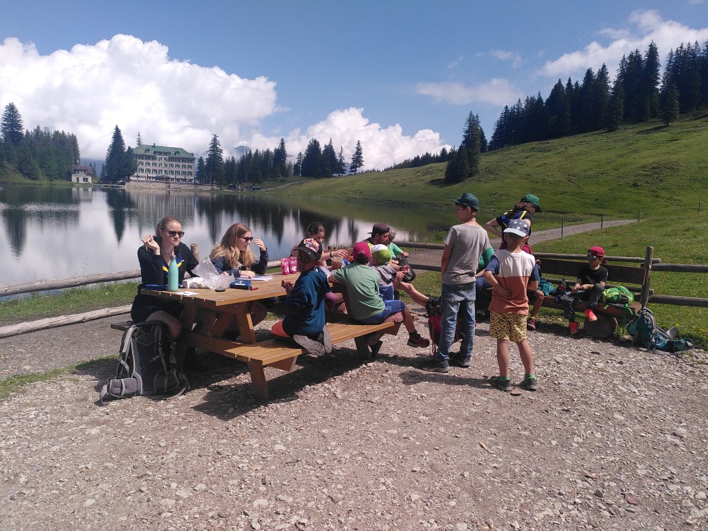 Dann sind ein paar zwei Kinder um den see gelaufen. Dann sind wir zu einem Spielplatz gegangen und haben 20 Minuten gespielt. Dann sind wir zur Überaschung gelaufen. Die Überaschung war: Rodeln. Dann beim Rodeln sind wir Rodeln gegangen. Danach sind wir wider zurück ins Lagerhaus gelaufen. Dann sind wir Duschen gegangen. Danach sind die grossen und die Mittleren zurück gekomen und haben Faxitas gegessen. Danach sind wir ums Lagerfeuer gesessen und haben gesungen. Es war gut, es toll, es war Heiss. Dann sind ich ins Bett gegangen. Wich waren sehr Müde.