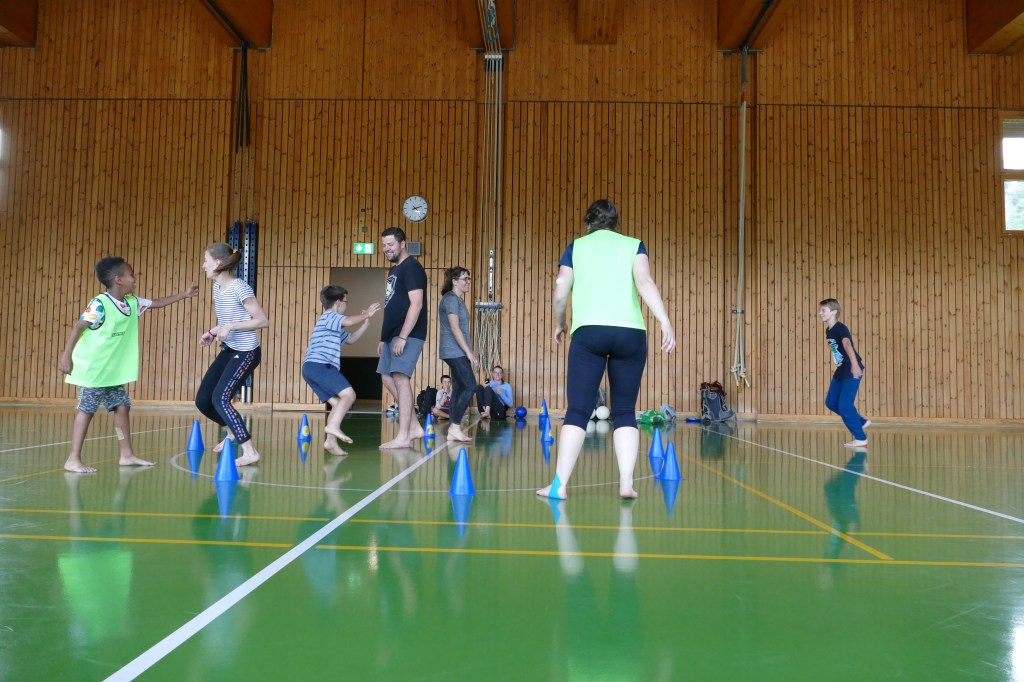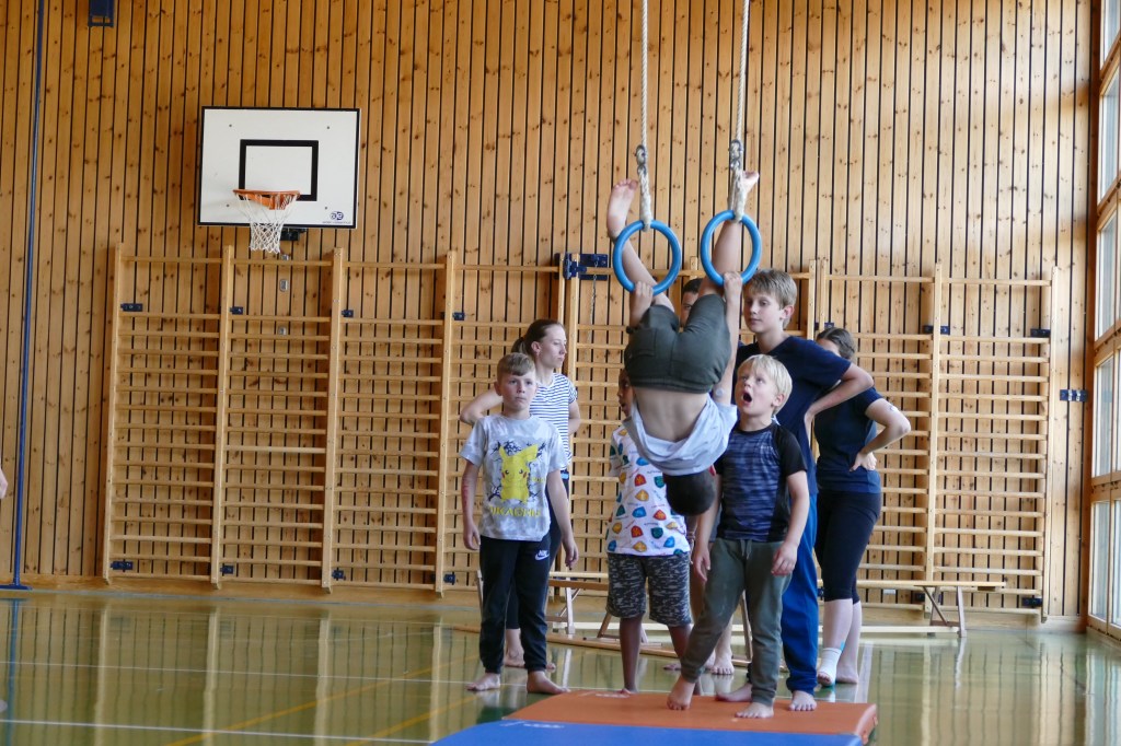 Alls erstes spielten wir Sitzball danach haben wir Adlerfangis und folkerball gespielt dan haben wir einen hindernis parkour auf gebaut. Wir haben auf dem parkour geturnt. Wir haben aufgereumt und zvierigegesen.