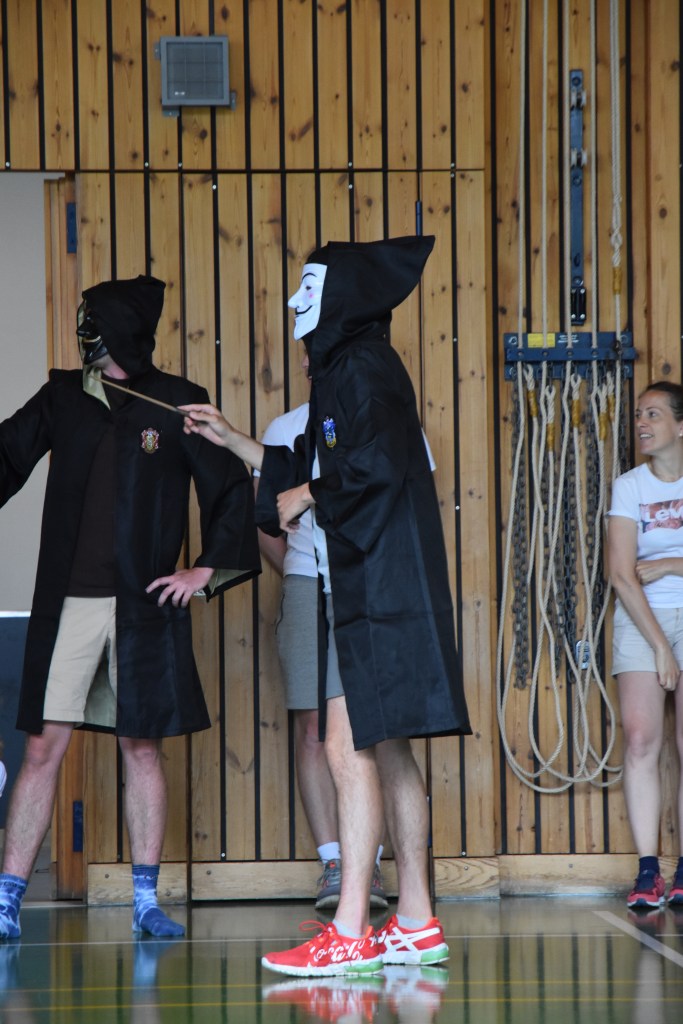 Die kleinsten räumten ihre zimmer auf. Zum Mittagessen gab es Pizza. Nach der leckeren Pizza suchten wir die restlichen Horcruxe. Danach zerstörten wir sie mit dem Feuerspruch.Wir liefen zur Turnhalle und spielten gegen die 7 Burgvölkerball. Nach einem schwierigen Spiel besiegten wir sie endlich.