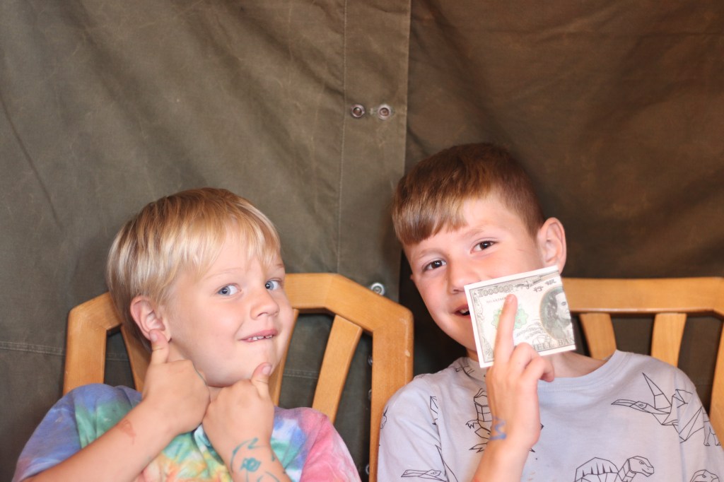 Wir durften diesen morgen 1 Stunde länger schlafen. Danach hatten wir Altersprogram. Die ältesten räumten und putzten das Haus schon ein bisschen. Die Mittlersten machten eine Schnitzeljagd.