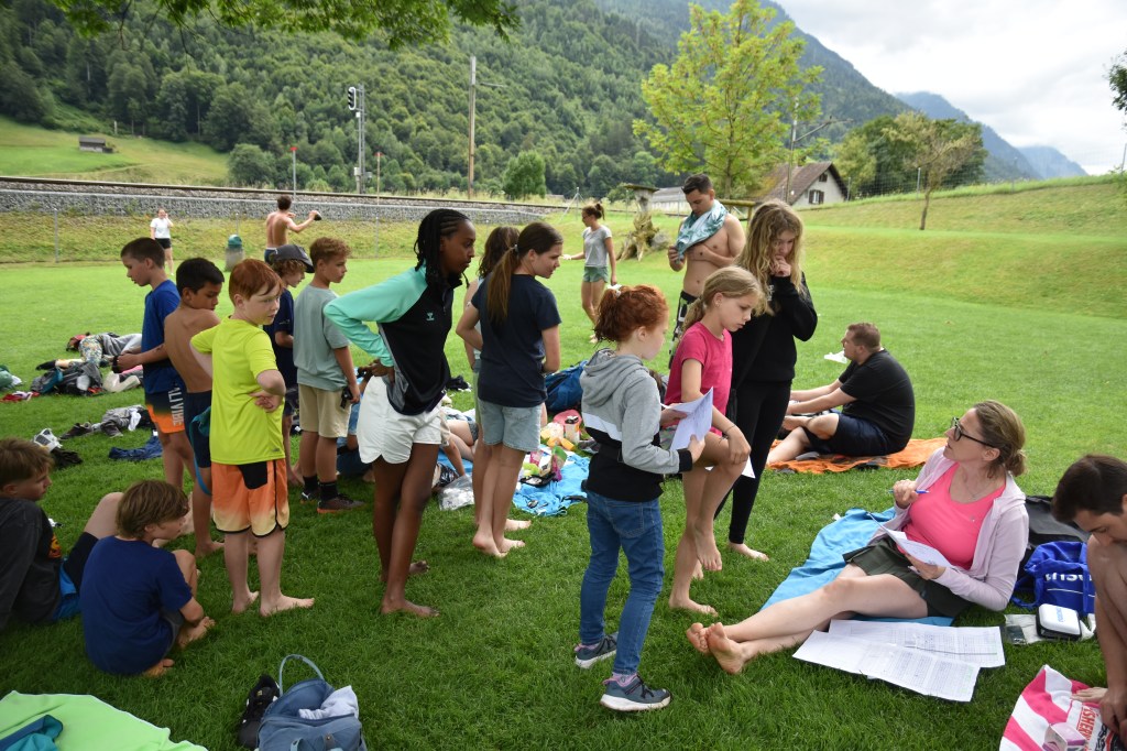 Dannach als mittagessen gab es Flamkuchen.wir alle hatteen richtig hunger und dank dem küchen team musten wir nicht ferhungern.am nachmittag durften wir noch mall schwimen gehen aber ein parr haben auch geschlafen.dann siend wir zum zug gelaufen und dann siend wir eine station gefahren dannach haben wir zvieri gegessen und auf den Bus gewartet.dann siend wir ins lagerhaus gefahren und dann durften wir uns ausziehen und duschen aber nicht die täuflinge. irgent wan kommt edie musig ndie toflinge hattenn schön dekorierten Tisch und mussten den Abwasch machen.