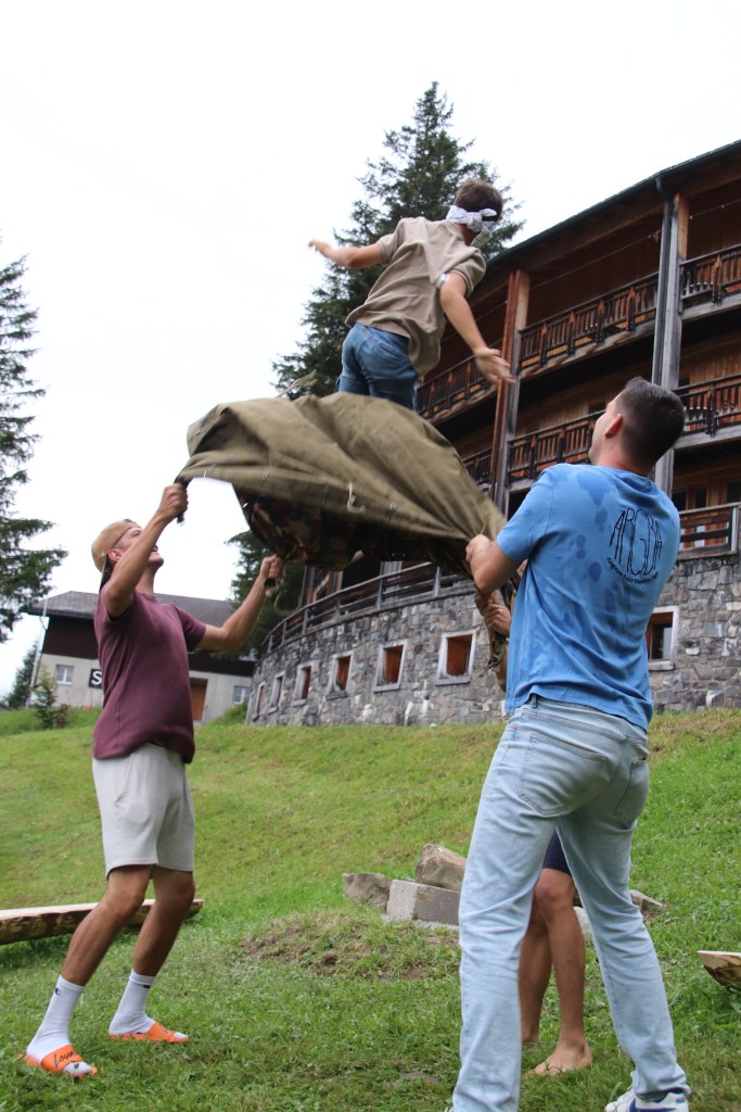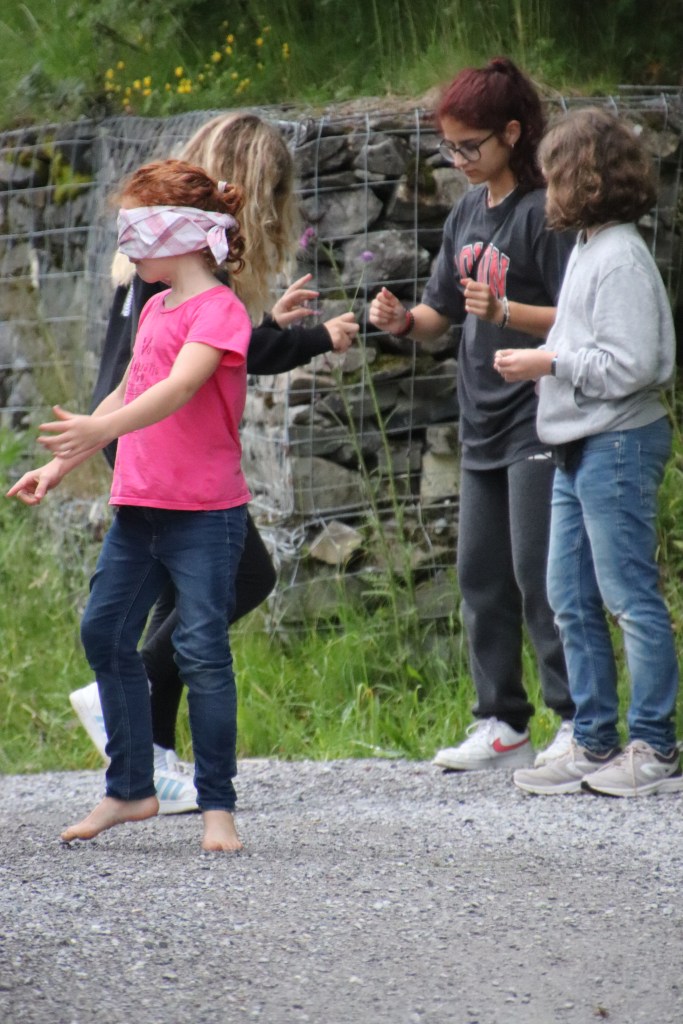 Nach dem wir die Ämtli gemacht haben, versammelten wir uns im Esssal.Vorzu wurden immer Teuflinge und ihre Begleiter aufgerufen.Bei der Taufemüssen die Täuflinge mit verbundenen Augen von Posten zu posten gehen und aufgaben erledigen.Nachdem man alle posten erledigt hat darf man duschen gehen und danach spätimbis essen.