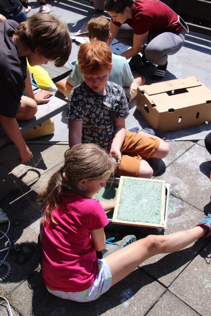 Heute war es sehr warm geworden, wärmer als die letzten Tage. Wir machten aus alten Zeitungen neue Papierblätter für die Dankeskarten.