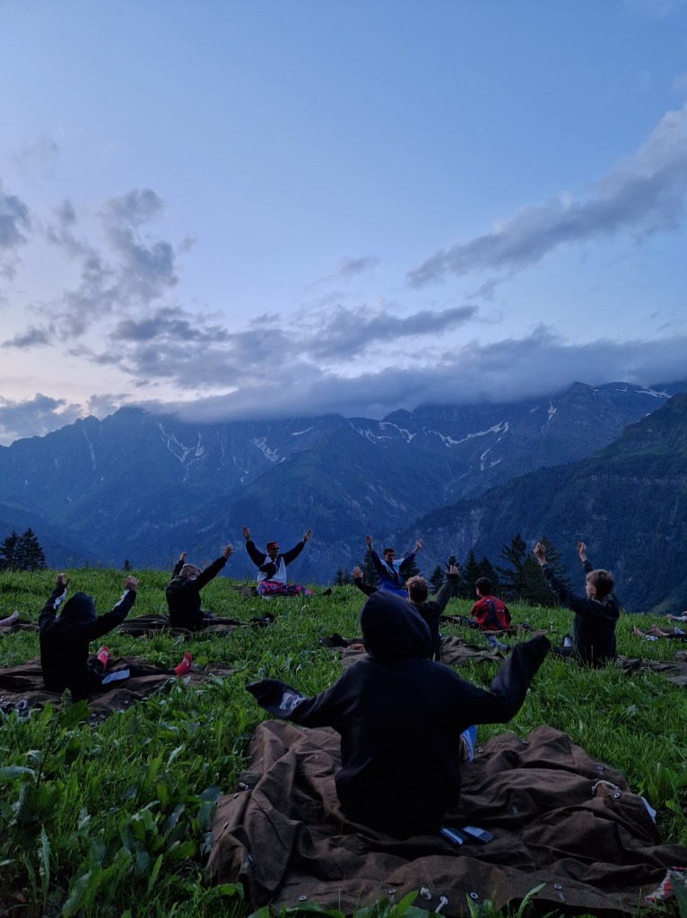 Dann waren wir auch wieder losgegangen um zu Wandern. Doch bevor wir wanderten, fuhren wir mit so Dreirad Dinger von der Gondelstation- oben zu der Gondelstation- unten. Das war mega cool! Von unter weiter gings dann wieder Bergauf, doch auf der anderen Seite. Es ging mega lange und der eigentliche Weg war gesperrt. Deswegen liefen wir Sponti noch mehr hoch, wohoo… Eine znünipause machten wir irgendwo auf dem Weg und Dolce bot allen die durchliefen ein Minipic oder so an. Wir liefen und liefen, bis wir bei einem Mini-Wasserfall ankamen (Bach der schräg runter lief). Wobei Papillon ein Steinzeitmensch wurde. Athena, Ley, Chanel und Papillon fanden mega viele kristallsteine. Weiter ging es und liefen meist nur noch runder. Während den Dolce und die anderen den Weg weiter liefen um Mittag zu essen, rollten Lay, Papillon, Athena und Chanel eine Wiese runter. Konnten aber alles wieder hochlaufen:)… Nacheiner Mittagspause und neuen kontakt knüpfen mit einer Wanderin (die auch Diabetes hat) machten wir uns auf den weg zur Gondelstation und wanderten von der Gondelstation- unten alles nach oben. Oben angekommen bekamen wir alle eine Glace von dolce spendiert. Nachdem Abendessen pflückten, fünf Jungs noch Blumen für jeweils ein Mädchen die sie für den Gala- Abend gefragt haben. Panini und Lapis, Shadow und Papillon, Arthur und Megara, Arkkordeo und Ginny, Gourmet und Ducky. Die, die wollten konnten noch auf die Trampoline gehen und die anderen machten was anderes. Dann gingen wir nachdem Späten ins Bett. Es war gut, es war toll :).