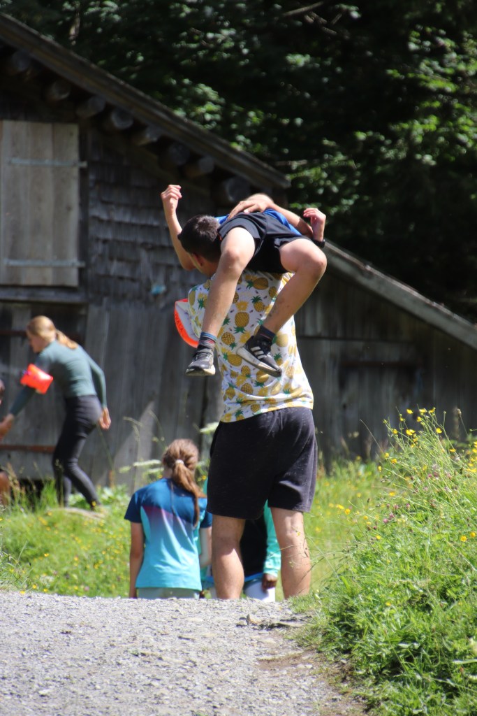 Bachus sein Sohn hat zugeschaut. Mit höchster Effizienz packten wir eine gefüllte Wasserflasche und unsere gute Laune in ein Rucksäckli, banden unsere Wanderschuhe eng an und starteten nach dem Pfiff eines Leiters eine gemeinsame Reise. Durch ein ausgeklügeltes System können die Leiter blitzschnell kontrollieren, ob alle Kinder zumindest physisch anwesend sind.