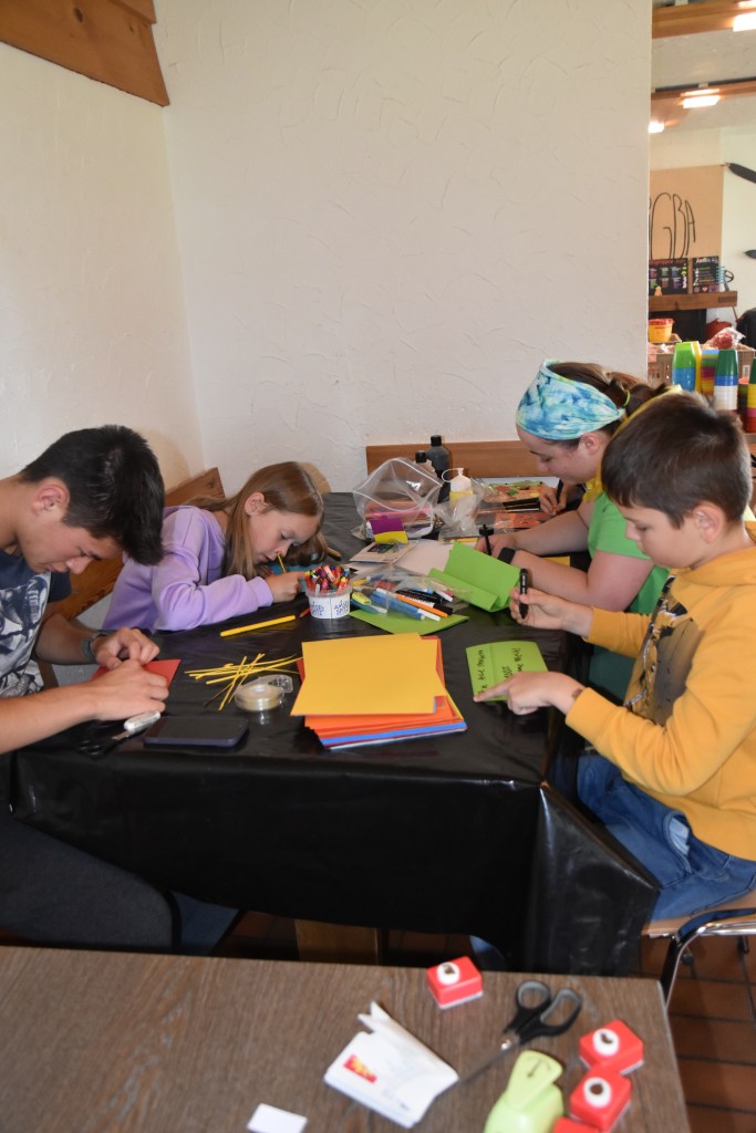 Dann haben wir Znacht gegessen wir hatten Kartoffeln mit Gemüse dann haben sich die Altersgruppen aufgeteilt die kleinsten haben sie Zimmer aufgeräumte und spiele gespielt. Die Mittlere Altersgruppe haben ihre Sachen für die 3 Tageswanderung gepackt und haben ein Spiel