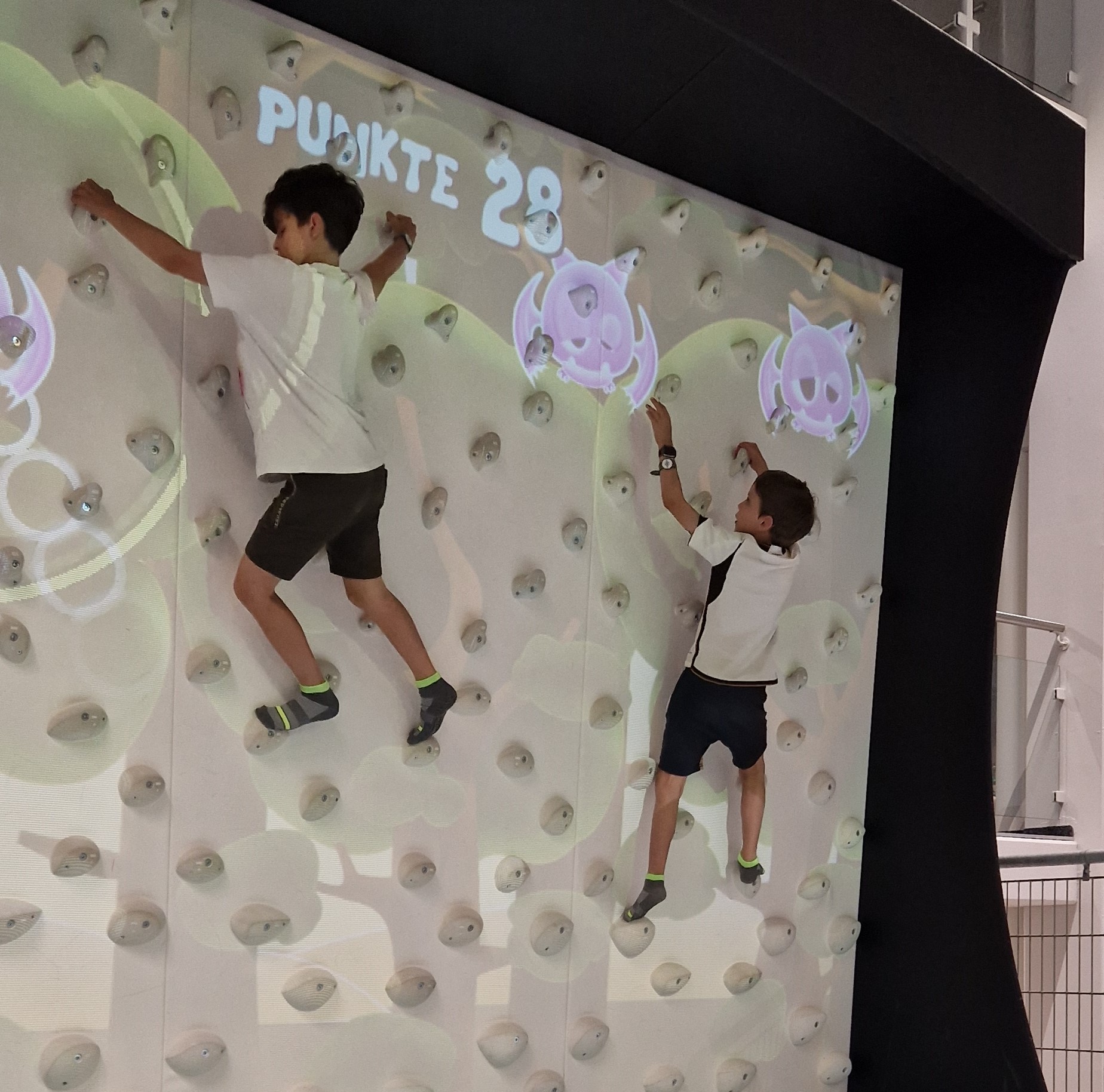 Wir sind zum swis holiday park gelaufen und haben uns eingecheckt. Sind wir rein gegangen und haben unsere Sachen in die Umkleidekabineschlösser gelegt ähm dann haben wir unsere Rutschsocken angezogen ähm wart schnell (lösch das wieder, heeyyy) und dann sind wir in den Park reingegangen und haben fast alles ausgetestet. Es war so eine Kletterwand da konnt man ein Level einstellen und konnt dahin mit den Seilen. Es gab so ein Trampolin davorne gab es einen Bildschirm und wenn du darauf gestanden bist, auf das Trampolin, bist du wie im Fernsehen gewewesen und dann konntest du mit deinen Händen und Füssen ein Game einstellen und dann konntest du das Game spielen. Es gab ein Parkour wo man Punkte sammeln konnte. Dafür musst man Klettern.