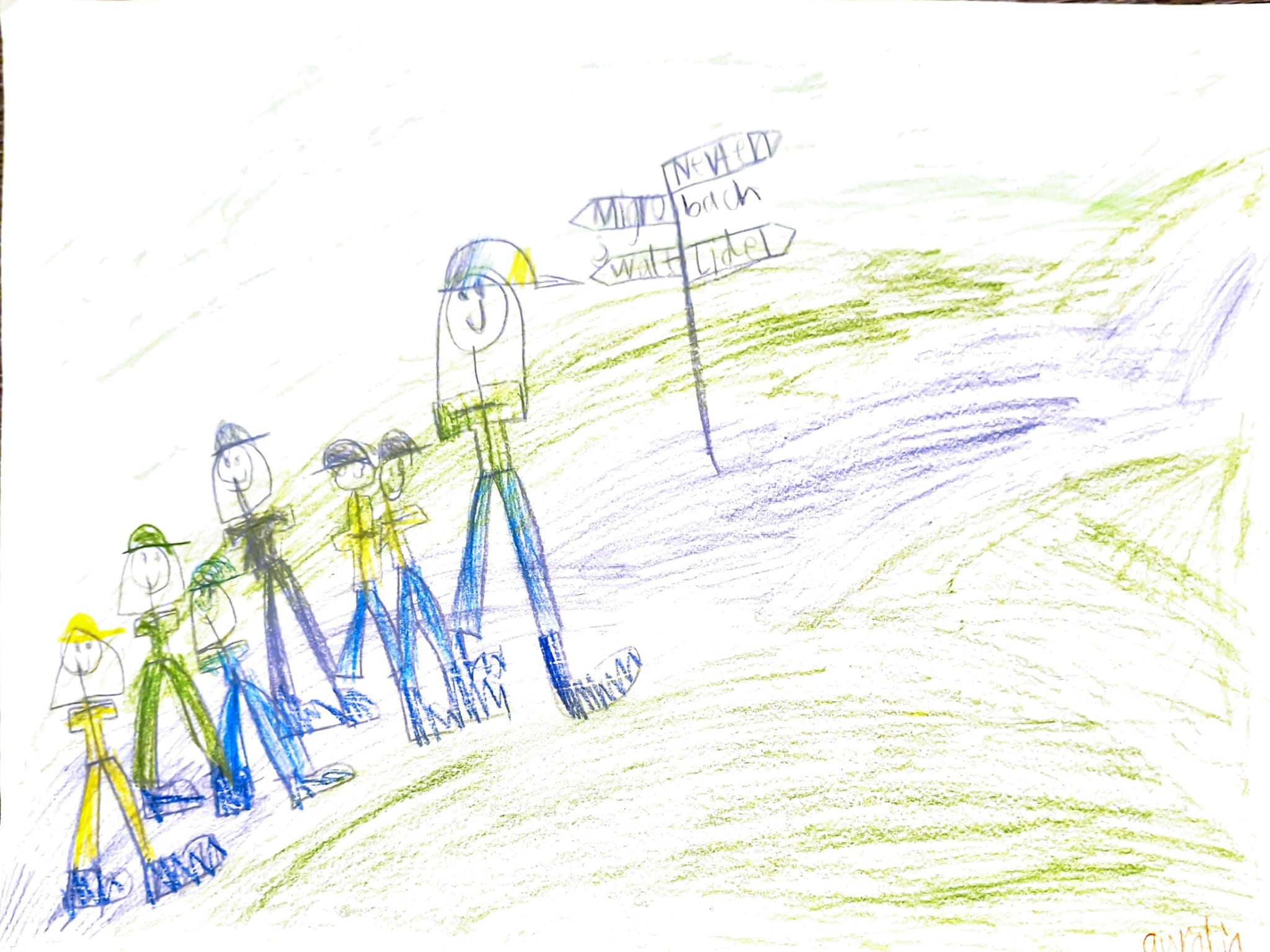 Dann sind wir zu einer Abzweigung gelaufen und haben uns dann für den Weg hinauf entschieden. Dann sind wir weiter zum Sessellift gelaufen und sind motiviert weitergelaufen. Irgendwann sind wir dann an der Kirche angekommen, wo wir immer vom Lagerhaus sehen. Zum Glück ging es dann nur noch runter und unten bei den Stiften haben wir ein Foto gemacht. Danach haben wir ein Wettrennen zum Lagerhaus gemacht und vor dem Lagerhaus haben wir den Marsch gefilmt. Das Abendessen war Kartoffelsalat. Am Abend haben wir noch Sardienen fangen gespielt. Nach dem späten sind wir müde ins Bett gegangen.