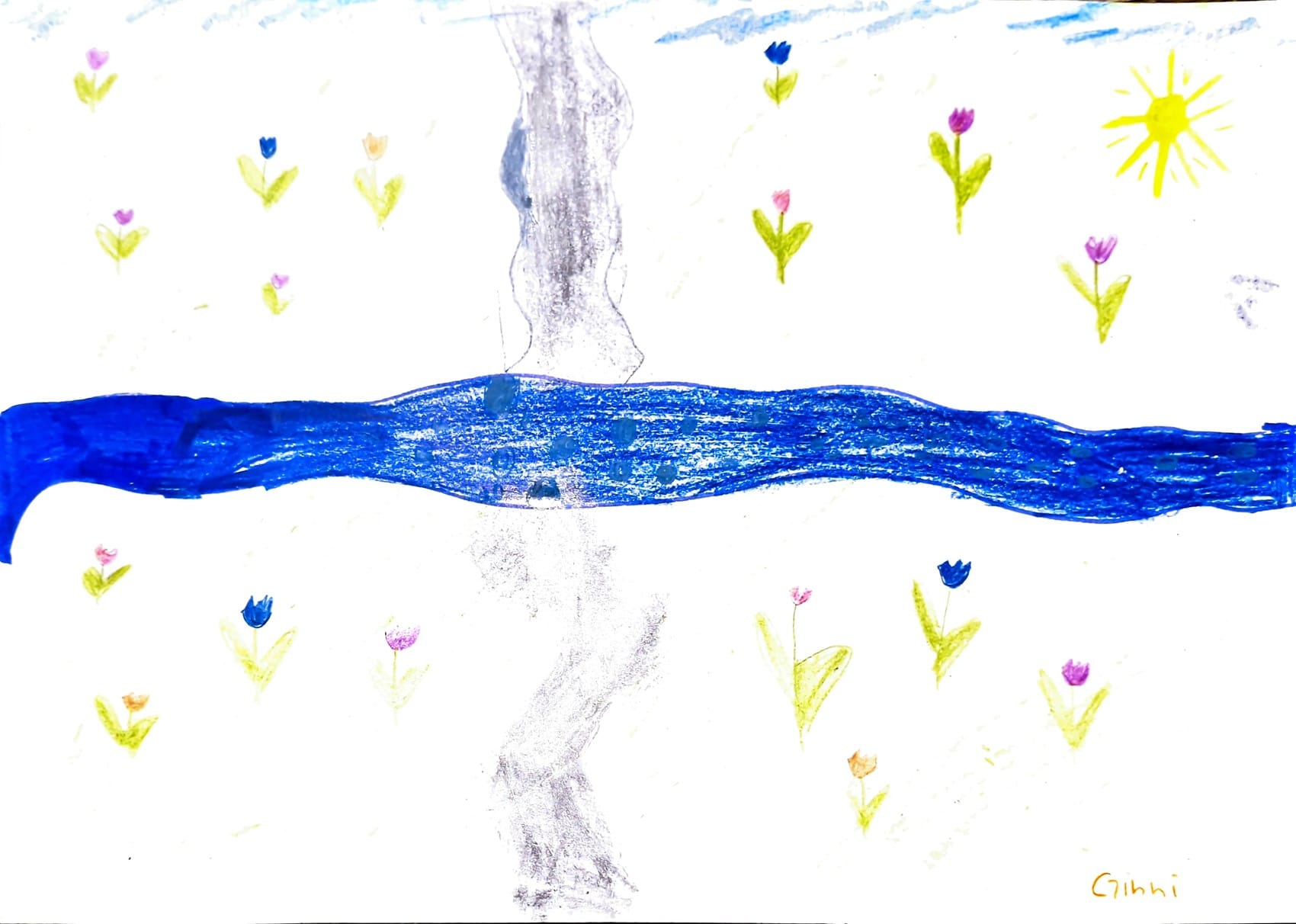 Irgendwann ist uns aufgefallen das wir falsch gelaufen sind. Dann hat Bilabu die Karte geschaut und hat gemerkt, dass wir auf dem Weg bleiben konnten. Deswegen mussten wir dann länger laufen. Später haben wir dann zu Mittag gegesen.