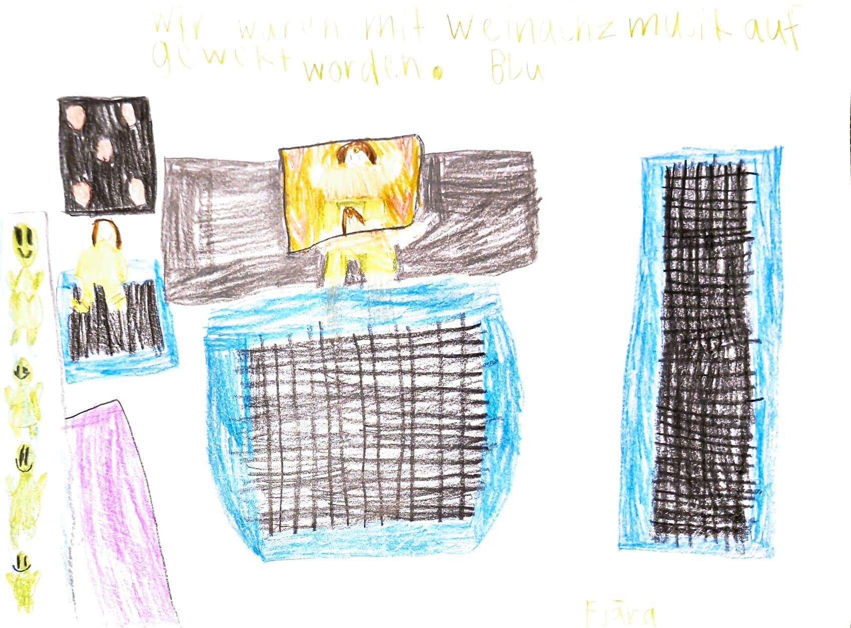 Was hämer denn gmacht? Bluetzucker gmesse… Obig gässe, also Ämtli gmacht. Mir händ no öppis gspilt. Ins Bett gangen und Bilabu hat uns eine Geschichte noch erzählt und dann sind wir schlafen gegangen.