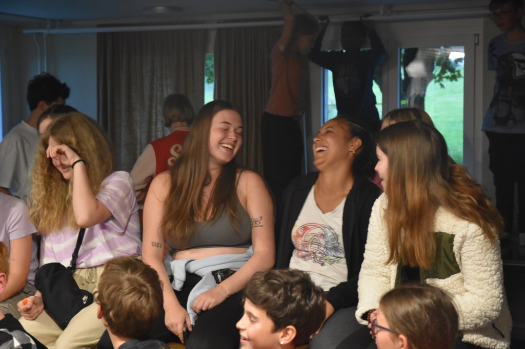 Wir wurden um 8:00 geweckt dies ist besonders den eigentlich werden wir um 7:00 geweckt. Danach haben wir gemessen und anschließend haben wir gefrühstückt und haben unsere ämtli gemacht dann gab es Altersgruppen Programm. Die jüngsten haben gepackt und anschließend haben sie ein Würfel Spaziergang gemacht. Dabei gibt ein Leiter jeder würfelzahl eine kleine Aufgabe, die bei der gewürfelten zahl erledigt werden muss. Die mittleren machten dagegen etwas anderes, sie lösten lustige und schwierige Rätsel und sie mussten sogar eine Brücke aus Papier bauen. Die ältesten haben über den Knöpfli tag geschrieben und angefangen zu packen. Kurzdarauf war wieder messen für den Mittag und dann durften wir das Mittagessen genießen.Anschliessend machten wir die Fotos für die Website, danach machten wir Gruppen um den bunten Abend zu geschalten dies ist ein Abend, an dem jedes kind in einer gruppe ist und diese gruppe etwas Tolles gestalten. Eine gruppe zum Beispiel machte ein spuck Wettbewerb dabei bekam man Wasser in den Mund und musste es so weit wie möglich das Wasser spuken, eine andere gruppe machten eine tanz Ausführung oder sie spielten ein rollen spiel. Leider war der Abend sehr schnell vorbei und es gab spät Imbiss Danachrde es ruhig im Lager Haus den die meisten gingen ins Bett. Nur bei den ältesten dort war es noch einwenig laut und es wurde dann erst so gegen 00:30 ruhig in den Zimmern.