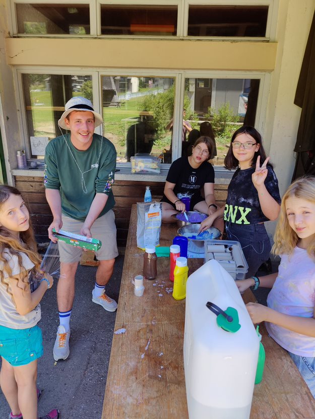 Das nächste grosse Highlight war der Knöpflitag. An diesem Tag werden die Rollen der Leiter mit denen der ältesten Altersgruppe getauscht. Endlich durften die Leiter mal Kind sein und den Ältesten dabei zeigen, was als Leiter auf einen zukommt. Sie haben ein super Programm aufgestellt, leider wurde ihnen vom seltenen Regen ein Strich durch die Rechnung gemacht und sie mussten die Aktivitäten auf das Innere des Hauses beschränken. Es war trotzdem ein toller Tag.